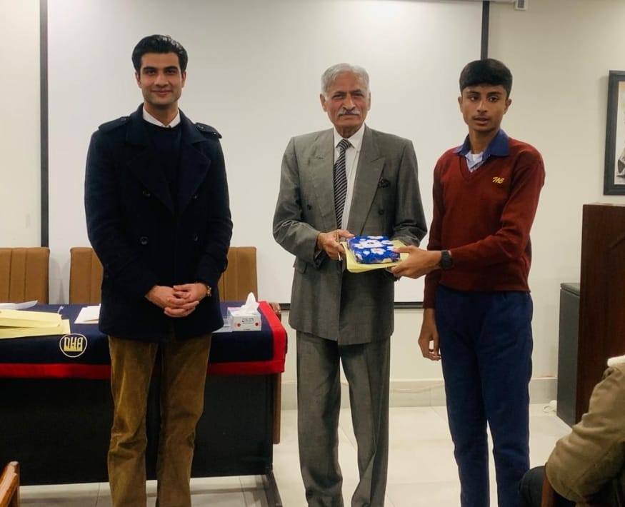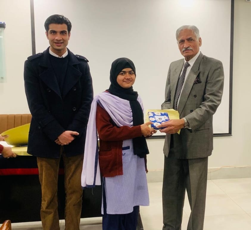 Mr. M. A. Hijazi, Mr. Nasir Chaudhry & Mrs. Ayesha. At the conclusion of the programme, a prize distribution ceremony was held, during which prizes were awarded to the position holders.